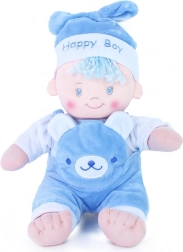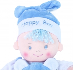 Denne ekstra bløde kludedukke vil glæde ethvert barn med sit venlige udseende og behagelige touch. Det blå outfit med den søde bamse og hue giver dukken en særlig charme, mens de broderede detaljer sikrer hyggelige og trygge kram.
