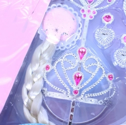 Forvandl hverdagens leg til et eventyr. Dette prinsessesæt med elegant lyserød udsmykning og lang blond fletning får ethvert kostume til at stråle og giver små pyntesjæle selvtillid og et magisk look.