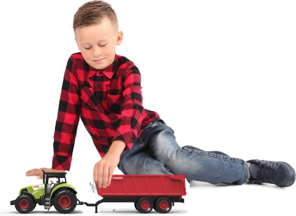 En moderne traktor med rød trailer fra kollektionen Min lille gård vil glæde enhver lille landmand. Den tilbyder lys- og lydeffekter, svinghjul for jævn kørsel og en aftagelig trailer for endnu flere lege-muligheder. Batterier er inkluderet i pakken.