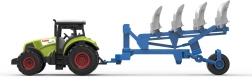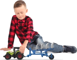 Kørslen drives af et friktionsdrev, så traktoren nemt kører i gang med et let skub. Den samlede længde på sættet er 37 cm, hvilket sikrer stabilitet og nem håndtering for små børnehænder. Batterier er inkluderet, så børnene kan begynde at lege med det samme efter udpakning.
