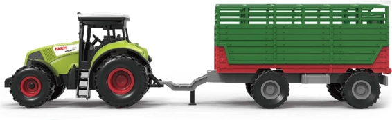 En moderne plasttraktor med trailer fra kollektionen Min lille gård vil glæde enhver lille landmand. Den byder på lys- og lydeffekter, friktionsmotor for jævn kørsel og en aftagelig trailer for endnu flere lege-muligheder. Den samlede længde er 37 cm, og batterier AG13/LR44 medfølger.