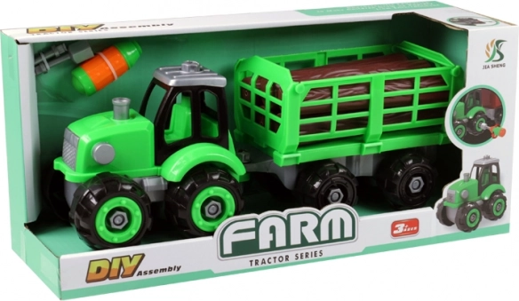 En sjov og robust skruetraktor med træanhænger, der glæder alle små landmænd. Med den medfølgende skruetrækker kan børn nemt skille traktoren ad og samle den igen, hvilket udvikler finmotorik, kreativitet og logisk tænkning. Den større længde på 32 cm og realistiske detaljer understøtter fantasileg både inde og ude.