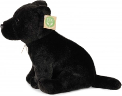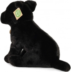 Denne sorte plyshund med lys brystplet er som skabt til at blive krammet. Præcis håndværk og blød, tæt plys giver et livagtigt udtryk, som børn straks vil elske. Fyldet af genanvendte PET-flasker er 100% sikkert, testet og føles som almindeligt fyld.