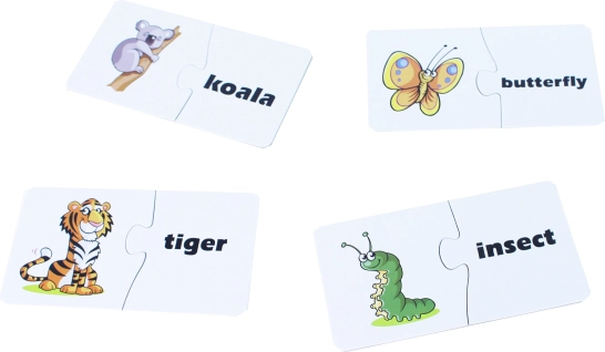 Puslespillet kombinerer læring med sjov og hjælper børn med bedre at forstå dyrenes navne og egenskaber gennem visuelle forbindelser. Illustrationerne inkluderer farverige gengivelser af dyr som koala, sommerfugl, tiger og insekter, der vil fascinere børn.