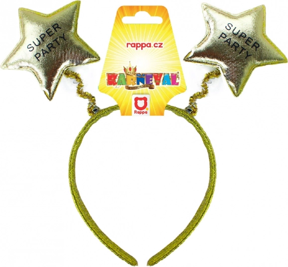 Karnevals-hårbøjle med teksten SUPER PARTY er et stilfuldt tilbehør til enhver fest, som tiltrækker opmærksomhed med sine gyldne stjerner.