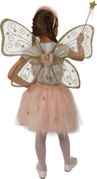 Kostumet inkluderer gyldent dekorerede vinger og et stjerneskørt, som giver enhver pige et magisk udseende.