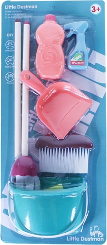 Det sjove rengøringssæt til børn vil glæde små hjælpere, når der leges hjem. Det indeholder en moppe, spand, fejekost og fejebakke samt tilbehør, der ligner rengøringsmidler, så rengøringen bliver legende og sikker.