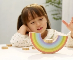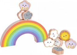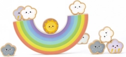 Denne farverige træregnbue med syv buer fungerer som en vippende base, hvorpå børn stakker skyer og sol. Legen udvikler tålmodighed, balance og logisk tænkning og byder på uendelige variationsmuligheder. Takket være de glatte kanter og det robuste træ er den ideel til daglig leg.