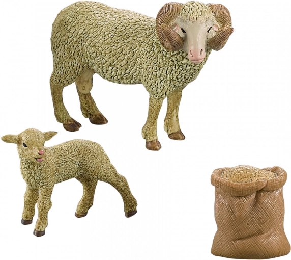 Figuren af vædderen i dette sæt har realistisk ullignende struktur og buede horn, ideel til pædagogiske formål eller samlerkollektioner.