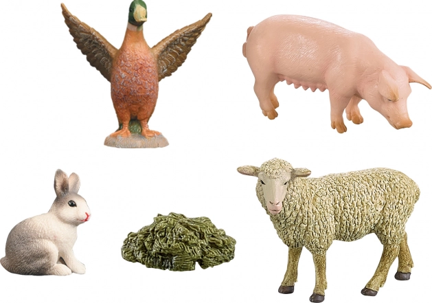 Det lille svin, fåret, anden og haren har realistisk struktur og farver og er lavet af kvalitets hård gummi, som tåler daglig leg.