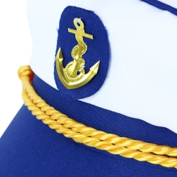 Forvandl din lille eventyrer til en ægte kaptajn. Denne lette og komfortable kasket med klassisk maritimt design fuldender kostumet og giver et autentisk look. Den hvide krone med blå skygge og elegant kant virker ren og festlig.