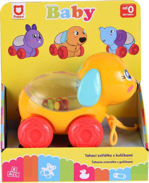 Den søde trækkehund på hjul giver børn masser af sjov og bevægelse. Når den trækkes eller bevæges, hopper farvede kugler rundt inde i den gennemsigtige tromme, hvilket stimulerer synssansen og motorikken. Den ideelle legetøj til de første skridt og aktiv leg.
