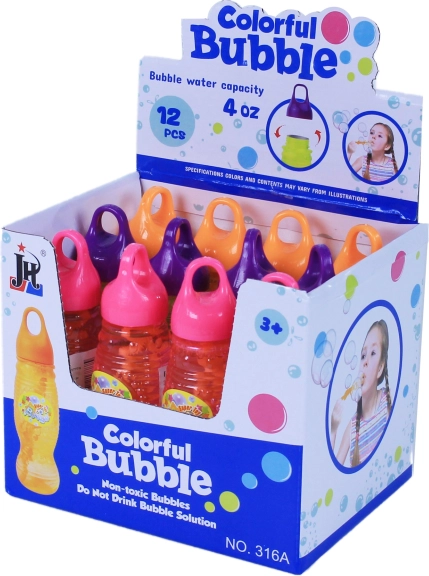 Oplev glæden ved bobler med en praktisk sæbebobleflaske i farverig udgave på 115 ml. Takket være blæsepinden integreret i låget er boblesjov altid lige ved hånden – åbn, dyp og blæs. Velegnet til børneleg i haven, på legepladsen og til fester.