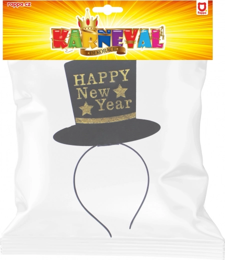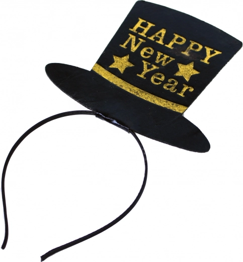 Sort hovedbånd med lille hat, suppleret med gylden tekst HAPPY New Year, er et fantastisk tilbehør til fest eller party, når det nye år bydes velkommen!