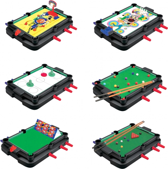 Nyd sjov og leg med dette enestående 7 i 1 spillesæt, som indeholder bordfodbold, billiard, kuglespil, airhockey, dartskive, bowling og basketball. Ideelt til hyggelige sammenkomster eller familieselskaber.