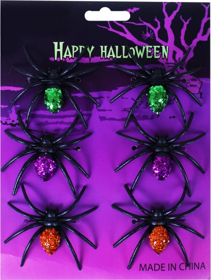 Dekoration edderkopper med glitter 3 farver