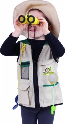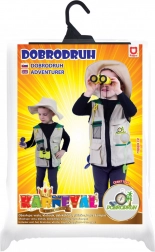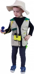 Dette karnevalskostume forvandler ethvert barn til en modig opdagelsesrejsende. Den lette vest med lommer og hatten uden snor er nemme at tage på, mens det rige tilbehør stimulerer fantasien og udvikler nysgerrigheden ved leg både inde og ude.