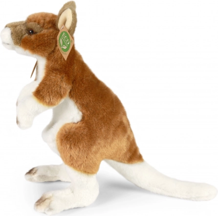 Den eco‑friendly fyldning af genanvendte PET‑flasker sikrer hensyn til miljøet, mens blødheden og komforten forbliver på topniveau. Kænguruen står oprejst, har den karakteristiske hale og ører, hvilket understreger dens troværdige fremtoning.