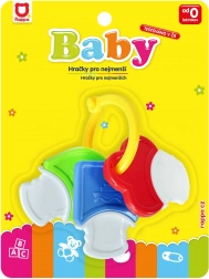 Den praktiske og lette rangle/bidering i nøgleform fanger opmærksomheden med klare farver og en behagelig tekstur, som hjælper barnet med at massere gummerne. Den er let for små hænder at gribe om og understøtter naturlig udforskning og leg.