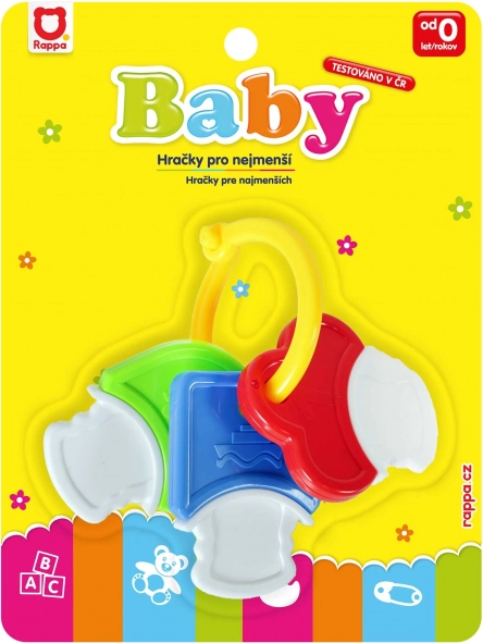 En farverig rangle og bidering formet som nøgler er ideel til de mindste. Den understøtter motorisk udvikling, visuel stimulering og giver lindring ved tandfrembrud.