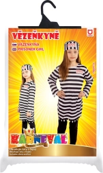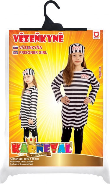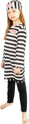 Gør enhver kostumefest sjovere med dette iøjnefaldende fangepige-kostume i klassisk sort‑hvid. Sættet indeholder en lang bluse med karakteristisk savet kant og en hue med nummeret 9999, som giver et autentisk udtryk. Velegnet til piger 105–116 cm høje (ca. 4–6 år).