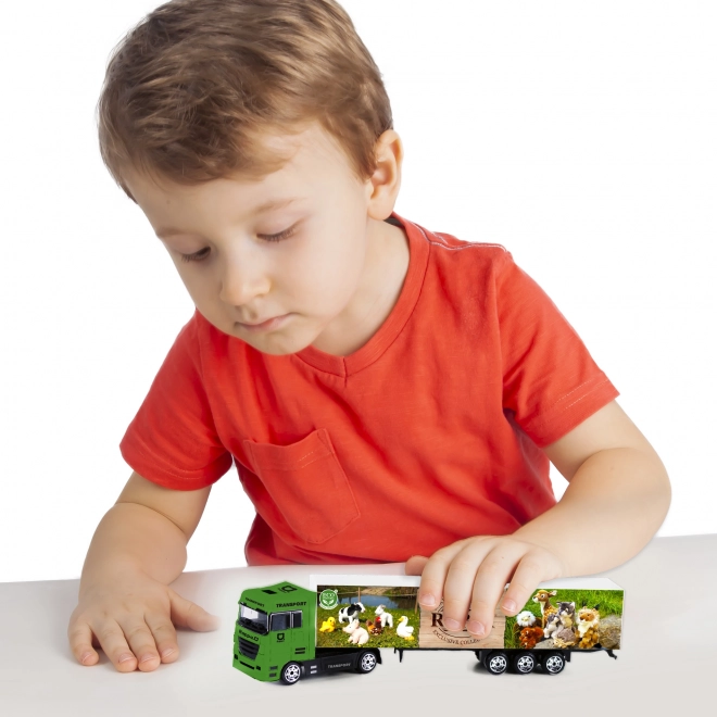 Udvid din samling med en stilfuld lastbil, der imponerer med detaljeret udførelse og kvalitetsmaterialer. Metallisk kabine og PVC-trailer sikrer lang levetid og sikker leg. Takket være friløb kører lastbilen nemt ved et let skub – uden batterier og besværlig vedligeholdelse.