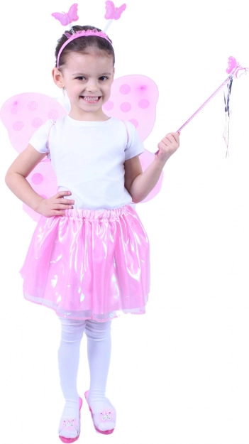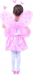 Lyserøde vinger med polkaprikket mønster giver dragten en magisk følelse og er lette og behagelige for børn.