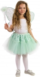 Gør enhver pige til en yndefuld fe med dette vidunderlige kostume. Det grønne tylskørt med satinunderlag er pyntet med små blomster og har en sølvfarvet elastik i taljen for behagelig pasform. Vinger og tryllestav er perfekt afstemt med det overordnede tema.