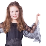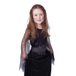 Dette børnekostume af en sort heks forvandler enhver pige til en ægte troldkvinde. Kjolen i universel sort farve er udsmykket med let gennemsigtige ærmer med spindelvævsmotiv, som giver outfittet et mystisk præg. Størrelse S er ideel til børn i alderen 4–6 år og højde 105–116 cm.