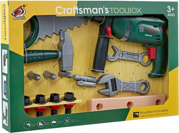 Komplet børnesæt til små gør‑det‑selv‑folk giver realistisk leg med værktøj som batteridrevet boremaskine, hammer, håndsav, nøgler og andet tilbehør. Boremaskinen bruger batterier 2× AA 1,5 V (medfølger ikke) og hjælper med at udvikle finmotorik, kreativitet og fantasifuld leg.