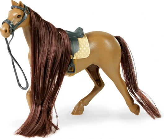 Den søde brune hest med mørk man og sadel vil glæde små dyreelskere. I pakken finder du også en sammenklappelig fold og plejetilbehør, inklusive en børste. Hesten er 14 cm og materialet er kvalitetsPVC. Nyd en realistisk gårdleg og pleje af hesten med masser af tilbehør.