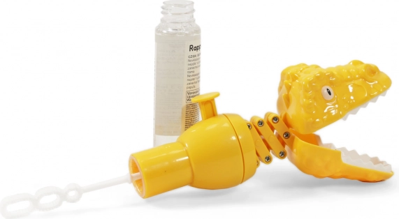 Giv børnene glæde med en sød sæbebobleflaske formet som en dinosaur. Takket være det bevægelige dinosaurhoved og den integrerede blæser i låget laver I på et øjeblik masser af glitrende bobler. Den kompakte pakke med 40 ml indhold er ideel til ture, legepladsen og fester.