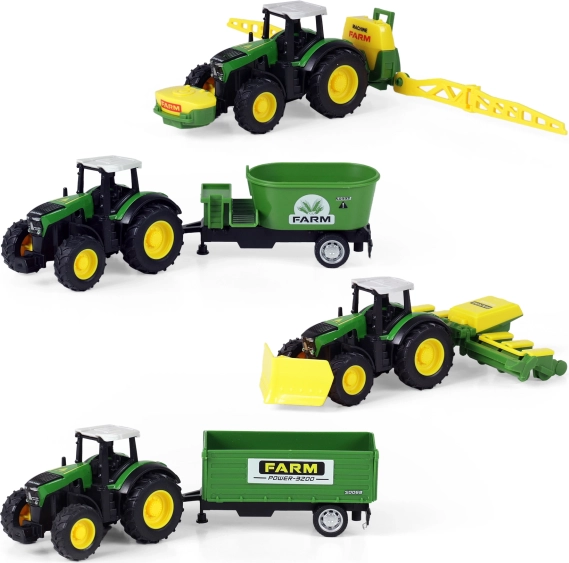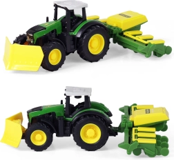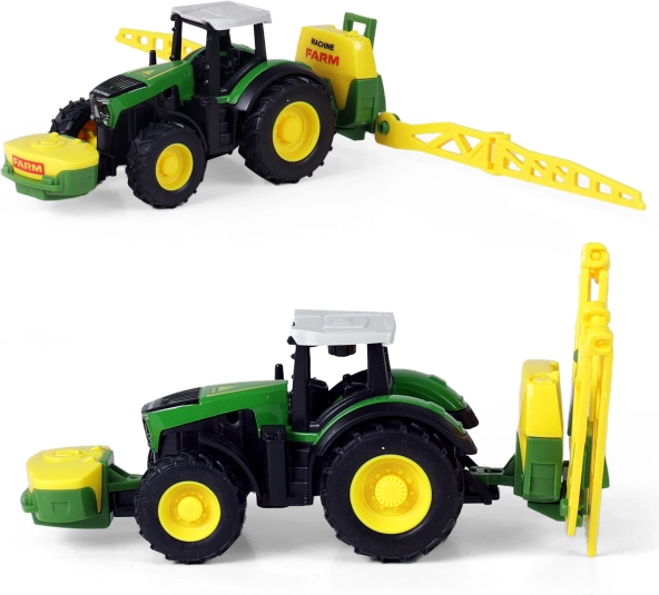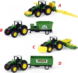 Oplev magien ved landbrug med denne moderne traktor og dens aftagelige anhænger. Den let aftagelige anhænger giver dig fleksibilitet til forskellige aktiviteter på gården. Traktoren er udstyret med kørsel med baglæns svinghjul og måler ca. 18 cm inklusiv anhænger. Vælg mellem 4 forskellige modeller, der imponerer med deres gennemarbejdede design og realistiske detaljer.