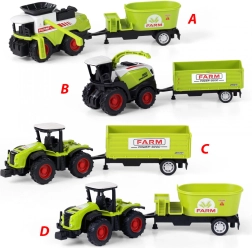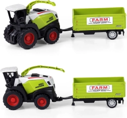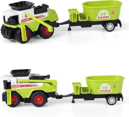Traktoren suppleret med en aftagelig anhænger er ikke kun et fantastisk supplement til børnesamlinger, men også et middel til at udvikle fantasi og forståelse af landbrugsmaskiners funktion. Den samlede længde af sættet er 18 cm, hvilket sikrer nem håndtering og manøvrering.