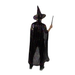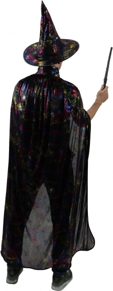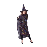 Dette detaljerede kostume er ideelt til enhver, der vil nyde magiske aftener i dramatisk stil. Det indeholder en smuk kappe med farverige edderkoppespindsmønstre og en matchende hat, der giver hele outfittet en ægte tryllebindende atmosfære.