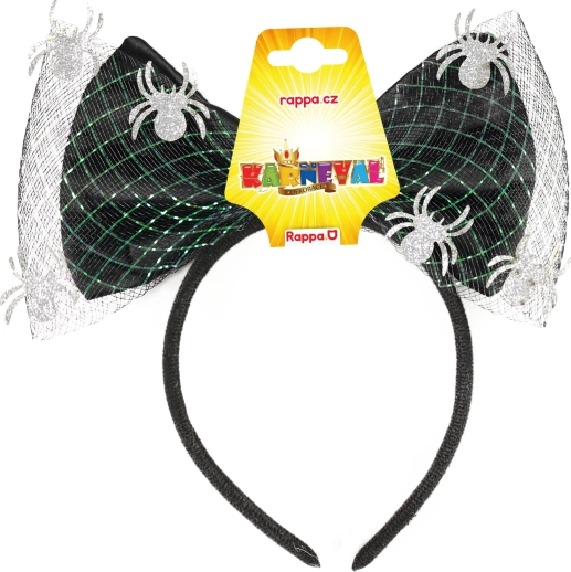 Fantastisk hårbøjle med stor sløjfe og små edderkopper, ideel som tilbehør til fest eller karneval.