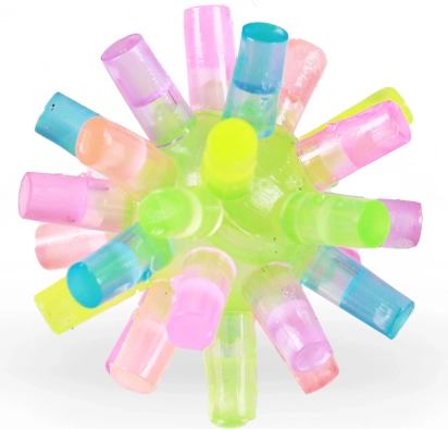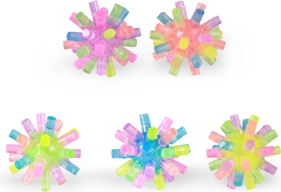 Vores hoppende bold med pigge bringer masser af sjov og kreativitet ind i hverdagslege. Med livlige farver og unikke pigge fascinerer den hvert barn og stimulerer deres fantasi. Selv om en bestemt type ikke kan vælges, sikrer den samlede pakke med 24 stykker timer med uforglemmelig sjov.