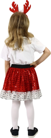 Gør julen til en uforglemmelig begivenhed med vores pigernes julekostume TUTU, der er ideelt til små prinsesser. Nederdelen i rød farve med hvid flæse tilføjer festlig stemning til helheden. Med det sorte elastikbælte tilpasser den sig til enhver kropsform. En del af kostumet er også det fantastiske pandebånd med rensdyrgevir, der perfekt fremhæver det samlede udtryk.