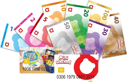 Indeholder falske sedler, mønter, betalingskort og andre hjælpematerialer til sjov indlæring.
