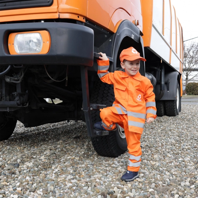 Det autentiske skraldemandkostume vil glæde enhver lille byeventyrer. Takket være det tydelige tjekkiske tryk “POPELÁŘ” og de reflekterende striber virker udklædningen troværdig og hjælper samtidig med bedre synlighed under leg.