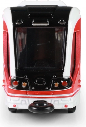 Realistisk metalsporvogn i rød udførelse med længde på 20 cm vil begejstre både små og store entusiaster af offentlig transport. Den tilbyder pull-back kørsel for dynamisk fart, åbne døre styret med en lille arm og robust metaludførelse for lang holdbarhed. En fantastisk gave til børn og samlere.