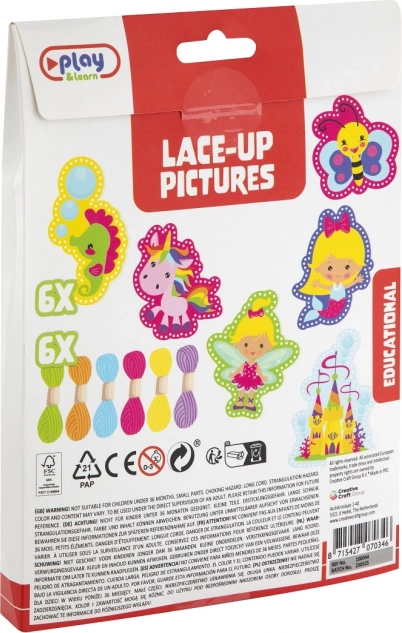 Opdag en sjov måde at introducere børn til håndarbejde. Dette kreative sæt indeholder 6 skabeloner til broderi og 6 farvede snørebånd, som hjælper de små hænder med at træne finmotorik, tålmodighed og kreativitet.