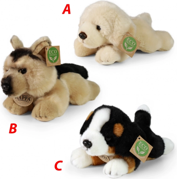 Sød liggende plys-hund på 20 cm i tre varianter, som glæder både børn og samlere. Den er lavet af kvalitets, blød plys og er en del af RAPPA’s eksklusive kollektion. Fyldet af genanvendte PET-flasker er miljøvenligt, sikkert og ved berøring ikke til at skelne fra traditionelt fyld.