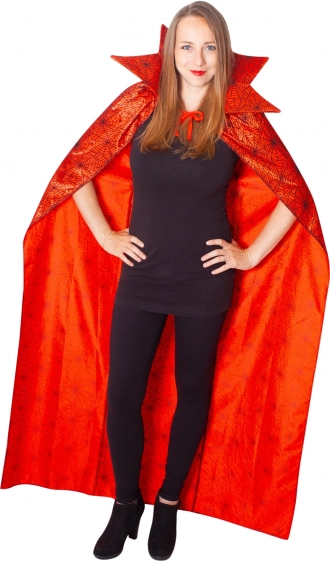 Forvandl dig på et øjeblik til en mystisk skikkelse – den røde kappe med spindelvævsmønster og høj krave er et perfekt valg til Halloween, temafester, teaterforestillinger og maskeballer. Materialets glanseffekt og den markante farve tiltrækker opmærksomhed og understreger dit kostume.