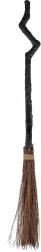 Kosten med sort håndtag og brun del til fejning minder om en klassisk hekse-rekvisit.