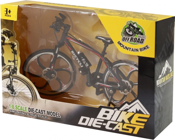 Modellen gengiver trofast en mountainbike – fra stel og styr til markante fælge og flaskeholder. Et fremragende stykke for samlere og børn.