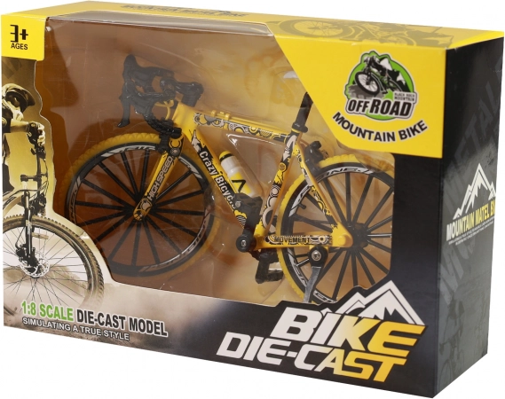 Den miniature gule mountainbike er et fremragende valg for børn, der elsker action og bevægelse, og for voksne samlere. Takket være frihjul sætter den let i gang og kører jævnt på flade overflader. Det realistiske design gør sig godt både på hylden og under leg.