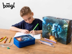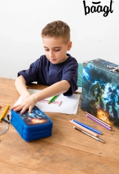 Trepers penal Robotter fra mærket BAAGL tilbyder rigelig plads til alle dine skriveredskaber. Med elastikker, der passer til både tykke farver og tuscher, samt pålidelige YKK-lynlåse, sikrer den nem håndtering i daglig brug.