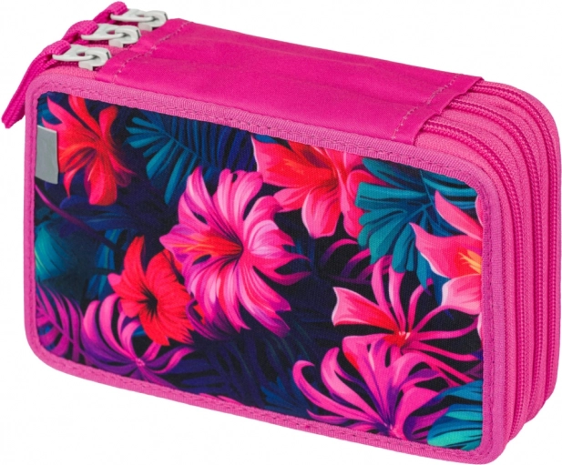 Dette tre-etagers skole penalhus med tropiske flamingo motiver og farverige blade tilbyder ikke kun stil, men især funktionalitet til organisering af alle dine skriveartikler. Hvert rum bruger pålidelige brandede lynlåse YKK og forstærket ryg letter håndteringen ved lukning.