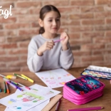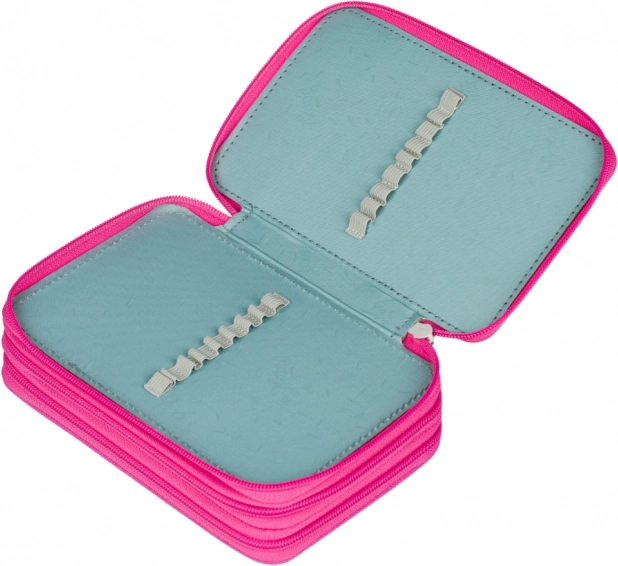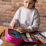 Penalhuset er udstyret med elastiske stropper, som kan rumme selv tykkere farveblyanter og tuscher, mens alle skriveartikler forbliver sikkert på deres plads.